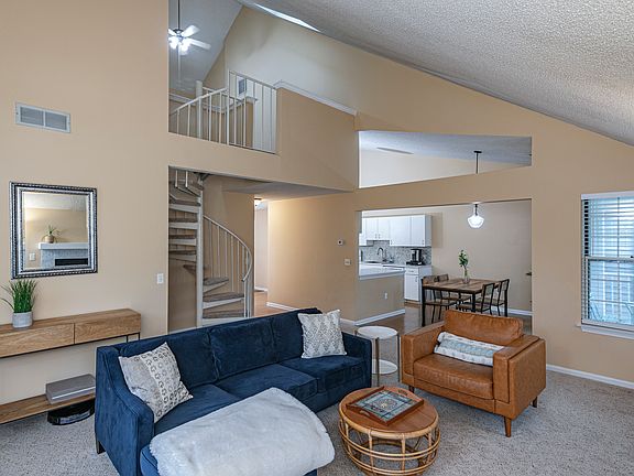 Welcome to the Bentley II, the biggest model in Eagles Chase, where carefree living is a way of life! Tucked away in a sought-after Lawrenceville community, this gem is conveniently located near a wide range of dining, shopping, and healthcare services. Neat as a pin, this home greets you with neutral paint, a vaulted ceiling, and attractive flooring. Park in your private garage with indoor access, complete with a brand-new polymer floor and wireless keypad opener, giving you peace of mind when arriving home at night. Inside, the spacious kitchen offers plenty of prep space, while the adjoining living and dining areas enjoy the cozy ambiance of a wood-burning fireplace and sliding doors to a covered terrace. Upstairs, the sky-lit loft offers endless possibilities, whether as a home office, guest room, or hobby space. Down the hall, you'll find two bedrooms, including the primary suite with its own bathroom. A second full bathroom is in the hall. The bonus is an in-unit laundry room featuring a Samsung washer and dryer. The longest driveway in Eagles Chase, a new hot water heater (2024), and a Bosch dishwasher round out this move-in-ready home.