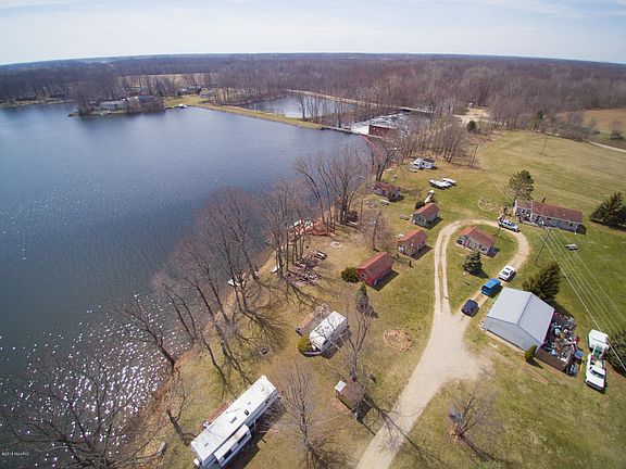 What an amazing opportunity on One of the Biggest All Sports Lakes in All of Branch County! 3 Acres of land and 454 Feet of Frontage Boasting Amazing Lakefront Views. Property consists of Main Year-Round Home featuring 2 bedrooms, 1 bath, new furnace, new hot water heater and new wood floors. There are also 4 seasonal cabins each with beds, bathroom and kitchenette. 6 sites available for campers or RV's which has access to the shower house. There is a spacious deck near the lake and a nice sized dock great for relaxing. The property also includes an oversized garage. Currently rented seasonally but could be used as an AIRBNB investment.