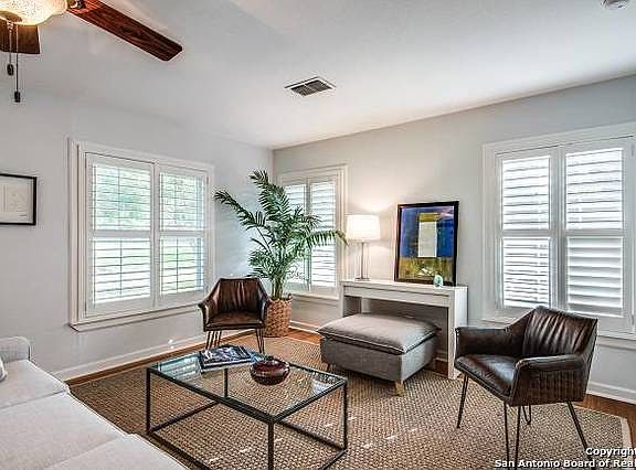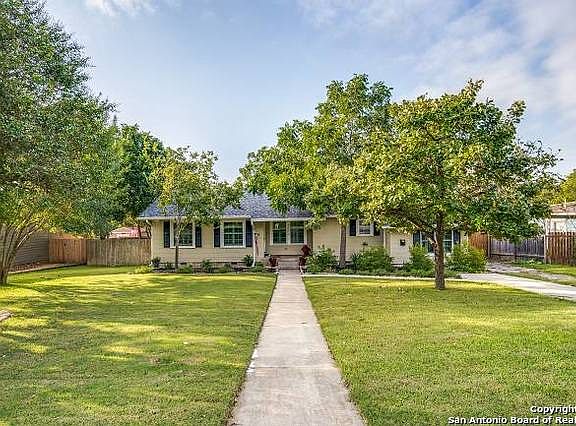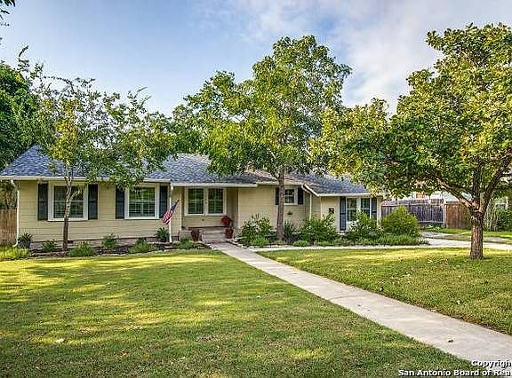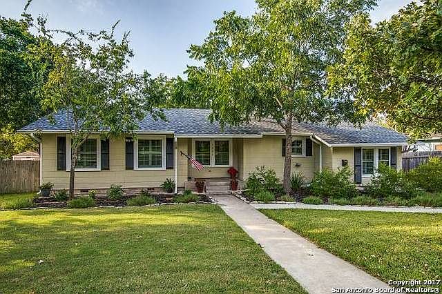 Charming updated Ranch-style home in Terrell Hills! Gourmet kitchen with cherry cabinets and stainless appliances. Split master suite includes his and hers closets and updated bathroom. Plantation shutters and California closets in each of the three bedrooms. All major systems upgraded including a recent roof, HVAC. and Windows. Large private backyard with back patio make it ideal for entertaining! Conveniently located close Fort Sam, airport and downtown.