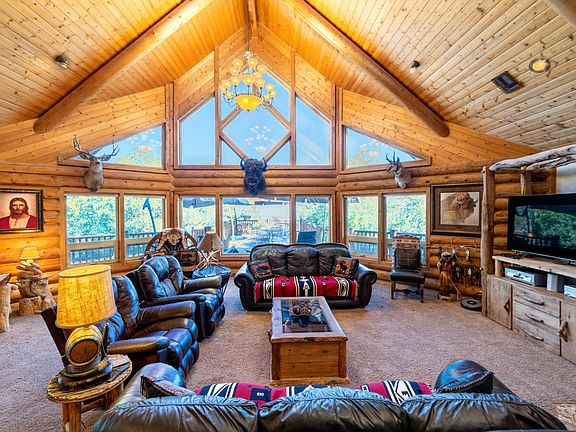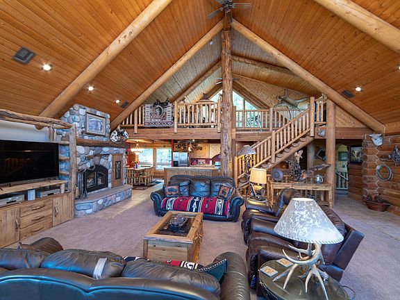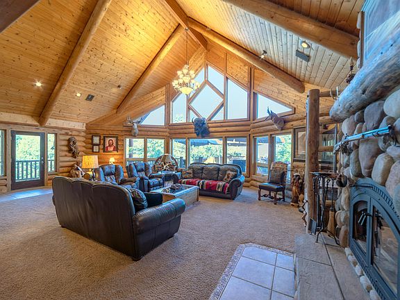 Beautiful custom built 10 inch log home on an amazing lot with breathtaking views and a private natural pond with fish. Endless deck space, custom details throughout the entire property, oversized 2 car garage, additional shed and lots of storage in the basement. Horse property up to 3 horses. See video Water shares are not included with the sale of the prope