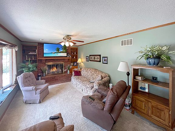Welcome to this impeccably maintained 4 bed/2.5 bath home nestled in a tranquil subdivision. Boasting mature landscaping that enhances its curb appeal, this residence impresses with dual fireplaces, offering cozy ambiance in both the formal living room and the inviting family room—ideal for entertaining guests or relaxing evenings. A recently replaced roof and durable metal siding ensure peace of mind, while the fenced corner lot provides a space for outdoor activities and pets. Enjoy the luxury of double patios, perfect for hosting gatherings or simply unwinding outdoors. Inside, custom kitchen cabinets add a touch of elegance and practical storage solutions. Whether you're seeking a serene retreat or a place to entertain, this home offers both comfort and functionality.