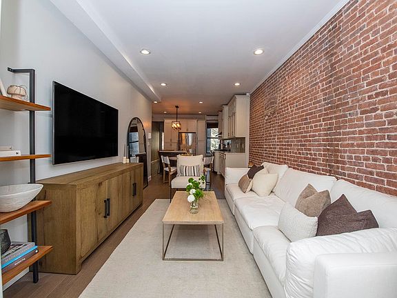 Nestled within the coveted Hudson Street in Hoboken, 2-bedroom, 1-bathroom gem demands your attention. Completely renovated down to the studs in 2020 perfectly crafted, this unit spares no detail, boasting stainless steel appliances and an in-unit washer and dryer. The allure of exposed brick adds instant character to this inviting abode. Bedrooms are positioned at opposite ends for enhanced privacy and a serene retreat. Sunlight streams in generously, highlighting the unit's natural charm. Abundant storage solutions abound, including a spacious closet in the primary bedroom and two additional large closets nearby. The second bedroom, accommodating a full/queen-size bed, doubles perfectly as a home office, affording a tranquil view of the shared backyard through its window. The kitchen, a culinary haven, features top-of-the-line KitchenAid appliances stove, dishwasher, fridge, disposal, and microwave. Full spa like bathroom with LED stand up shower. Convenience meets accessibility, with prime walking proximity to the ferry, PATH, and Hoboken's vibrant array of shops and eateries. Parking and additional basement storage unit are available for an extra fee. Additional features include a shared private yard with tables and benches accessible via the basement and security surveillance both within the building and at exterior entrances, with optional tenant access. Building does not allow pets. Available 8/1 make this yours today!