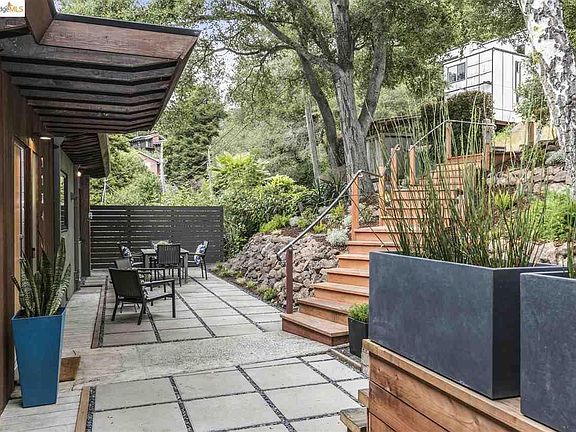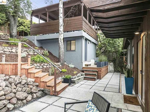 Midcentury Modern--Polished to Perfection! Meticulously maintained & upgraded 5br, 3ba w/lower level family room & wet-bar/kitchenette. Flexible floor-plan, can also be used as 3br/2ba w/separate 2br/1ba in-law for potential income or extended family. Floor-to-ceiling windows with views of surrounding greenery and the bay. New integral-color plaster fireplace. Lovely patios and landscaping. 2-car carport. Modern, open floor-plan fabulous for entertaining. Tranquil location near pocket parks, footpaths, Tilden Park and Golf Course.