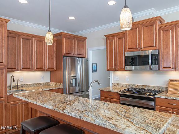 Gorgeous custom-built 3 bedroom/3 bath home in the town of Oriental. From the Brazilian granite countertops to the bamboo flooring, this home was superbly designed to showcase its attention to detail and luxury in the most delightful ways. The cathedral ceiling in the spacious open living area, an abundance of light from the large windows that adorn the rear walls and the solid composition decking on the oversized rear deck are all waiting to show you the best of the best. The first-floor main bedroom is complimented with an oversized bath featuring a large tiled walk-in shower. A cozy Carolina room just off the kitchen is the perfect setting to overlook the beautifully manicured lawn and serene landscaping while you enjoy your morning coffee or tea. An extra-large room over the garage can double as a second owner suite, ''(wo)mancave'', game room or additional gathering area. The two guest suites are large enough to be furnished with king beds and have 9' ceilings. This unique home is complete with perfectly designed spa room containing a Bullfrog customizable jacuzzi, vented cedar vaulted ceiling, floor drains and pre-wiring and plumbing for future installation of a mini-split HVAC system. Additional features include whole-house filtration/softening system, reverse osmosis system for prep sink and ice maker, zoned HVAC and a stand-by whole house generator so that you are never without power! Lots of storage throughout the house and a concrete driveway to the attached double car garage complete this offering. Convenient location makes it possible to take a golf cart to dining, shopping and sightseeing.
