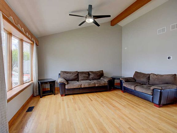 An amazing Quad level home featuring 4 bedrooms, 2 bathrooms, finished basement on a quiet cul-de-sac. This home was built in 1991 and and is 1700 sq ft. The home has been freshly painted in a popular grey color. The living room has vaulted ceilings, a gorgeous wooden beam and hardwood floors. It opens up to the kitchen and over looks the beautiful backyard. The family room has a wood burning fireplace. The finished basement has an extra room that could be an office or playroom. On the 2nd level you will find 3 bedrooms and a full bathroom. The master bedroom has a walk in closet equipped with closet organizers. The backyard has a beautiful deck area perfect for summer BBQ's. There is also a patio area located off of the garage area, shed for extra storage and swingset. Enjoy a quiet summer evening in the privacy of your backyard. Some recent upgrades include 2020 New hot water heater, fresh paint throughout the inside of the home, 2017 the outside of the home was painted, 2014 new furnace and AC, 2009 new roof. This home is conveniently located to highways, shopping, schools, parks and walking trails. Schedule your showing today!! You will fall in LOVE! Make sure to watch the virtual tour to see more details of this home.