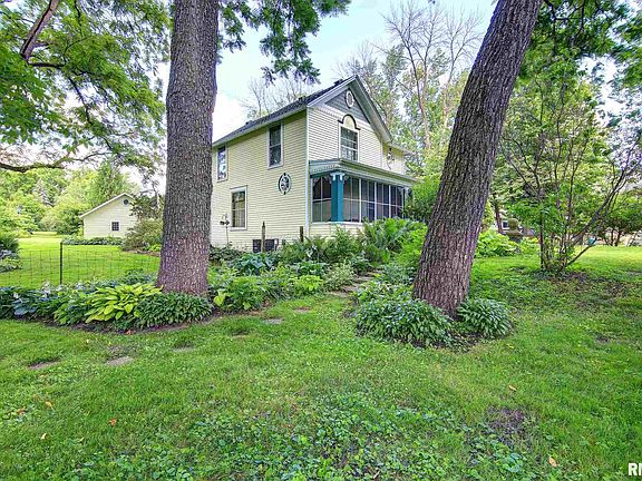 Park-like setting for this 4 bedroom home that has SO much character and sits on just over an acre! Seller owned this once before; purchased it again last year and has since partially restored the beautifully landscaped yard that was featured in the garden walk! Home features well-maintained original woodwork, french doors, built-ins, farmhouse style kitchen, and so much charm. Main floor has the kitchen, half bath, large dining room with french doors leading to a sitting area, living room with french doors leading to the patio, and a screened in porch. Upstairs has 4 bedrooms, a full bathroom and plenty of storage. Original spiral staircase located in the hallway closet. Updates since 2010: roof, furnace, central air, siding, storm windows, updated electric, & insulation. 3 car garage with cupola (2001). Playhouse/shed stays. 1 Year AHS warranty!