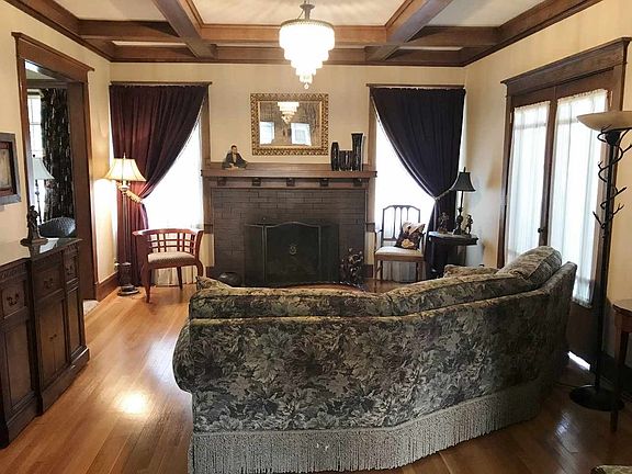 Stately brick 4 br home on large lot. Built in 1911 by one of Hastings finest citizens. Close to iconic lighted water fountain & park. Sunny enclosed front porch. Quarter- sawn oak in living rm & dining rooms. Gas log fireplace. Den has built in oak cabinets & shelves (Possible BR). Sitting-Sunroom off of living room. Re-imagined kitchen & .5 bath on main floor. Stained glass windows on landing of open staircase. Art glass light fixtures. Upstairs has 3 roomy bedrooms, 2 w/ original cabinetry/bench.