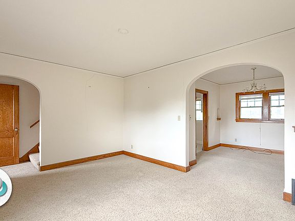 This corner duplex features a shared detached garage and a generously sized, fully fenced backyard perfect for outdoor activities and just steps away from Monroe field. Inside, the home your introduced to a spacious living room filled with natural light, a dedicated dining area, and a semi-equipped kitchen.