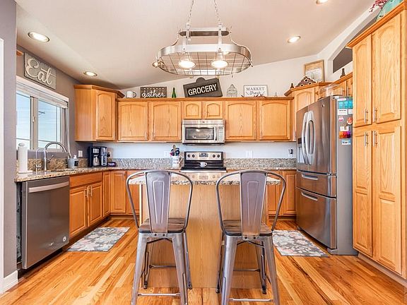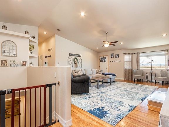 Gorgeous and spacious 5 bed, 3 bath home with a 3 car garage. This large family home gives you plenty of room to spread out with 3,677 sqft of finished living space. Beautiful open concept, with hardwood floors throughout. Lots of windows and skylights for natural lighting. Nice size kitchen with lots of cabinetry, granite countertops, island with eat-in space and an adjacent formal dining room for ease of entertaining. Secluded home office. Living room showcasing a beautiful fireplace. Massive master suite with a walk-in closet and a private 5-Piece master bath. Main level laundry. Finished basement featuring 2 nice size bedrooms and a full bath. Large family room great for entertaining with a bar including, Wine fridge and mini fridge. Newer stucco and roof, only 2 years old. New rear and front door with lifetime warranty. New Refrigerated Central Air system and newer furnace. Central Vac system. Water Softener system and brand new filtered drinking water system in the kitchen. Chicken Coop is only 6 months old. Energy efficient home with a solar panel system. Complete RV hookup with direct access to the septic. Excellent location and the end of the road with easy access to Purcell Blvd and to I-25