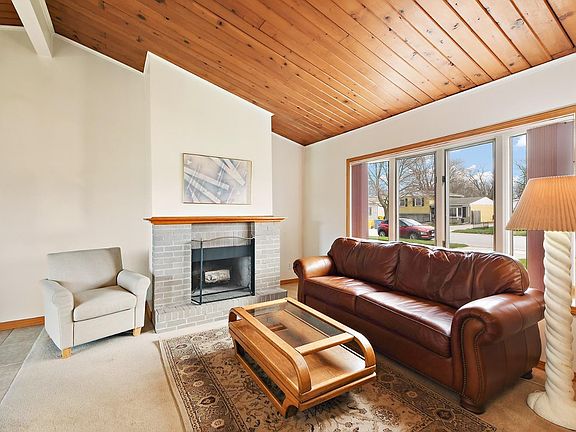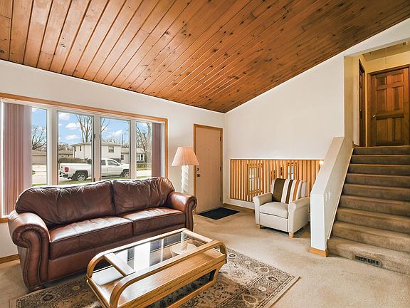 Lovely 3 bedroom tri level features remodeled kitchen, cathedral ceilings in living room and kitchen, hardwood floors (bedrooms), cozy living room fireplace, rec room, 22 x 24 insulated garage with side drive and custom built storage shed in a large, fenced in back yard.