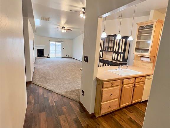 MOVE IN READY Townhouse with 2 bedrooms, 2 baths, an open kitchen and Central A/C. Beautiful updates in 2021 include solid core Knotty Alder doors and trim, paint, new carpet, water heater and laminate flooring throughout. The updated Primary bathroom features a walk in shower, large closet and a barn door accent. Accessibility is made easy with 3' doorways into the primary suite and bathroom. The guest bedroom is oversized and includes a built in desk area for all of your extras. Custom cabinets in the kitchen with soft close drawers, a built in wine rack and a ton of storage options. $425 Quarterly HOA dues include exterior maintenance, yard care, and street snow removal which makes this the perfect lock and leave home. Close to schools, shopping and the hospital.