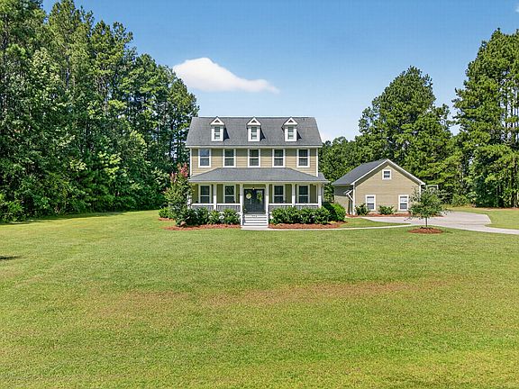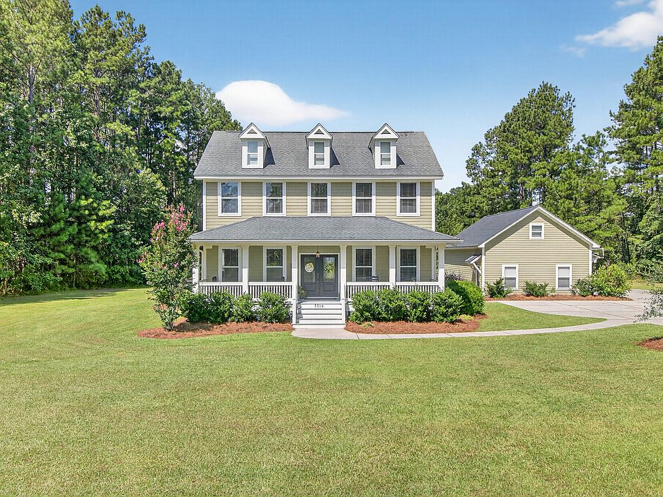 **Your Dream Home Awaits!**Step into luxury and comfort in this stunning custom-built 5-bedroom, 3.5-bath home, boasting nearly 3,100 square feet of exquisite living space. From the moment you approach the grand front porch, you'll feel the warmth of this beautiful residence--an ideal spot for cozy chats with loved ones.As you open the double farmhouse-style doors, you are greeted by a spacious foyer highlighted by soaring ceilings and elegant five-layer crown molding. The versatile formal living and dining areas offer a serene escape or the perfect setting for your home office.The heart of the home is a beautifully designed kitchen featuring custom cabinets, a stylish backsplash, and a unique island with a gorgeous wood countertop. The open dining area is surrounded by light-filled windows, creating a bright and inviting atmosphere. Double ovens and a microwave nestled in the island make entertaining a breeze. Relax and enjoy family time in the open-concept family room, complete with a cozy gas fireplace and built-ins designed for your personal touch. Freshly painted in welcoming earth tones, this space exudes positive energy. The luxurious first-floor master suite showcases a meticulously organized walk-in closet and a master bath that boasts a walk-in shower and a garden tub adorned with custom finishes. Upstairs, discover four spacious bedrooms with connecting Jack-and-Jill bathrooms perfect for privacy and convenience. Step outside to your backyard oasis overlooking a serene community pond, complete with a charming fountain. Delight in evenings around your fire pit, roasting marshmallows as the crisp fall air sets in. This home also features a convenient walk-up attic for extra storage, a first-floor laundry room, and a butler pantry. With a recent inspection confirming upgrades and minor repairs, this beautiful home is ready to welcome a new family. Situated on a high 1.02-acre lot in flood zone X, this property includes a detached 3-car garage great for toys or a workshop. Experience peace of mind in the gated community of Wassamassaw Plantation, equipped with the latest technology for secure access. Enjoy fantastic amenities, including a large community pool, picnic area, and a pavilion with a fireplace. Zoned for the highly-rated Cane Bay School system and just minutes from esteemed private schools like Pinewood, Northwoods, and St. Johns. Don't miss out on the chance to make this exquisite home yours! Contact us today to schedule a tour and start your new lifestyle in Wassamassaw Plantation!