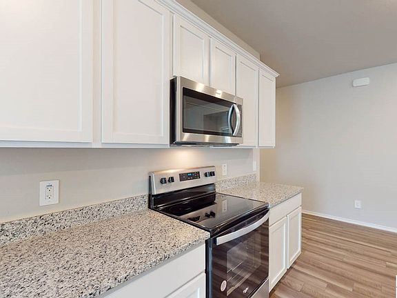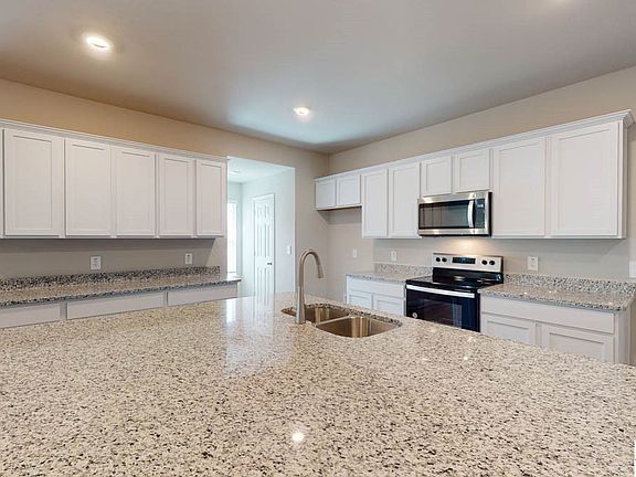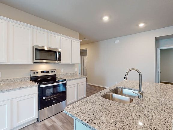 The Kingston is a single-story, 4-bedroom, 2-bathroom home featuring approximately 2,032 square feet of living space. The entry opens to the secondary bedrooms, and bath with linen closet. Center kitchen includes a large breakfast bar and perfect sized pantry. Open concept floor plan boasts spacious combined family room and dining area. The main bedroom, bedroom 1, features a sloped ceiling and attractive bathroom with dual vanities and walk-in closet. The standard covered patio is located off the family room. Additional finishes include granite countertops and stainless-steel appliances. You’ll enjoy added security in your new D.R. Horton home with our Home is Connected features. Using one central hub that talks to all the devices in your home, you can control the lights, thermostat and locks, all from your cellular device. With D.R. Horton's simple buying process and ten-year limited warranty, there's no reason to wait!