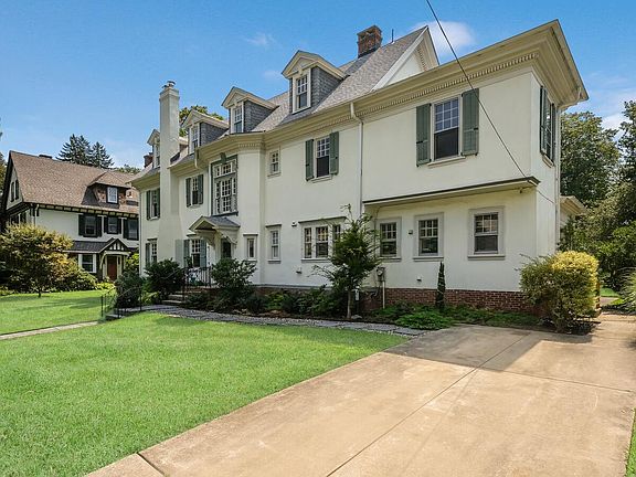 Stately 3 story Manor home in Elkins Park with flagstone center walkway leading to iron grill glass front door that opens to a private marble floor vestibule. The vestibule opens to a 2-story grand Foyer with refinished original recently finished hardwood floors turned staircase. 10 ceilings throughout the first floor. Center hall Foyer opens into spacious formal Living room with double French glass doors, turn of the century masonry fireplace with custom marble surround with custom mahogany mantle and large double-hung windows flanking each side of fireplace & triple eyebrow windows on side wall plus double French doors on the back wall leads to the back porch. The Grand center Foyer also opens to formal Dining Room with custom chair rail & crown molding, large triple window, and swing door that opens to the Kitchen with a separate eating room that offers custom, built-in glass door double pantry. Working Kitchen with hardwood floor, island offering stainless steel sink and dishwasher. Separate work area with Corian countertop. 2nd dishwasher, under-mount stainless steel sink & gas sealed burner cooktop with custom ceramic tile backsplash. Separate double wall oven, additional built-in glass door pantry cabinet, cast iron gas fireplace with custom tiled floor & wall plus brick accent wall. Large recently renovated Solarium just refinished with brick herringbone floor with vaulted ceiling & custom beams, 7 newly installed double-hung windows, 4 custom skylights & double French doors leading to first floor Dining Room. 2 completely renovated Powder rooms on 1st floor and a separate Laundry Room that can work as a mudroom. Custom black walnut turned staircase off of Foyer leading to large 2nd-floor landing. This home has 8 bedrooms, 4 full baths, and 2 half baths. The second floor offers large bedrooms with 9 ceilings & custom millwork. The Master Bedroom features an au pair suite/study & a gorgeous Master Bath with custom marble tiled walls and heated floor, a huge walk-in seamless glass door shower with marble tile & 2 showerheads. Beautiful replica eggshell clawfoot tub & custom cherry double vanity with Grey Granite top, custom mirrors & hardware. 3 full custom baths on the 2nd floor plus 1 additional full bath on the 3rd level. There are two other large bedrooms that share a comfortable full bathroom and a junior suite at the other end of the hallway with its own full bath. The third floor is only accessible via the service stairs and has another 4 bedrooms and a brand-new full marble bathroom. Built in 1901 by railroad magnate, T. Voorhees, this house was eventually bought and renovated by the Gimbel family, of Gimbel Department Stores fame. Located in Elkins Park, just outside of Philadelphia, this neighborhood has much to offer in a tranquil setting. The home is in the award-winning Cheltenham school district, close to shopping, supermarkets, hospitals, the Elkins Park train station, and a short drive away from Center City Philadelphia. The home sits on a 0.34-acre (14,670 SF) lot, with beautifully maintained landscaping. There are two porches and a large concrete patio, ready for entertaining!