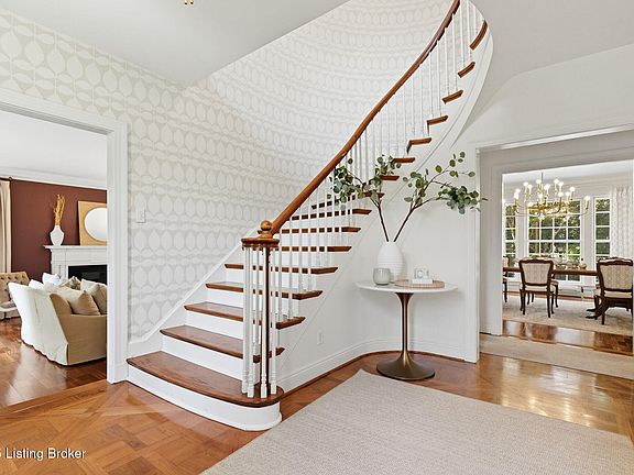 Presenting a perfect example of historical Stratton Hammon Louisville architectural tradition. 1114 Red Fox Road has masterfully captured it in residential design. Freshly renovated with stylish new lighting and paint throughout, this home honors classical proportions while incorporating thoughtful, imaginative details. Here, floor-length windows flood the interiors with natural light, and custom millwork delights the most discerning guest. Enter the grand foyer with a curved staircase. Sunlight continues into the central stair hall through leaded glass sidelights and a transom above. The gleaming hardwood flooring features stunning patterned inlays giving the home an added exquisite touch. Each room reveals a sense of refinement, from the grand living room that opens to an enclosed rear sun room, to the timeless and light-filled formal dining room. Make your way into the fully renovated chef's kitchen and hearth room, highlighted by expansive windows and French doors to the patio and gardens. A warm library/den/or additional dining area leads back to the front entry where you will discover an elegant powder room with a distinctive oval window adding a touch of whimsical charm. Upstairs, the primary suite begins with a private sitting room and continues into a spa-like bath with frameless glass shower and soaking tub, complemented by a relaxing screened porch overlooking the yard. Two additional bedrooms, a full bath with laundry, and a separate guest suite with attached full bathroom and rear stair access complete the second floor. The lower level offers additional living space, and could also serve as a separate living suite with separate garage access. The bonus room features a wet bar area and plenty of room for entertaining guests with a full bathroom nearby. There is additional storage space and laundry area as well as a generous-size family room. Nestled among classic landscaping and just moments from Olmsted's Cherokee and Seneca Parks, this residence perfectly blends timeless architecture with modern comfort.