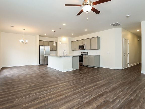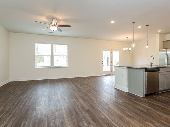 Inside, the open-concept floor plan allows for a seamless flow between the living and dining areas, maximizing space and natural light. Durable LVP flooring runs throughout the entire home, offering both aesthetic appeal and easy maintenance.