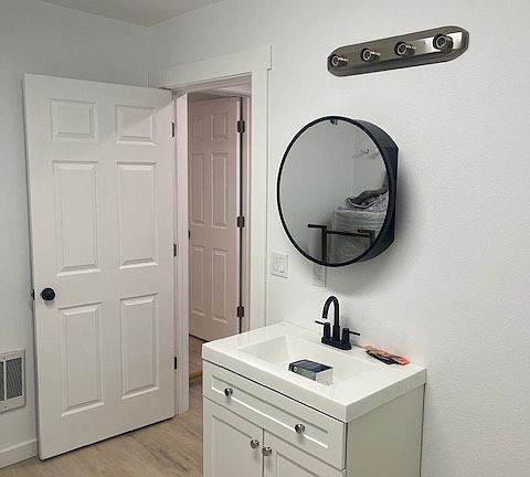 2 Bedroom with new everything! New floors, paint, appliances, kitchen cabinets, and counter tops. Large bathroom with walk in shower, and WD hookups, and large living room. This downstairs unit is excellent. It has two private off street parking spots, with more parking available. Owner pays water; tenant pays garbage, sewer, and electricity. Month to month agreement. $1,250, plus $850 deposit, and $25 per small dog per month (maximum 2 dogs). 6 months minimum stay. Security deposit is 50% refundable upon leaving the unit clean. No smoking in or around unit. Application with background and credit check required. Apply through Zillow. To qualify, you must make 2.5 X the rent. This means you must make $2,900 per month.