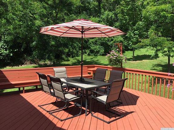 You will find this home situated on 2.61 country acres with gardens, brick fireplace w rotisserie, a gazebo, and soothing water feature w fountain. Spend time enjoying the property from the deck areas, relaxing and entertaining. There is room here for all with 2, 574 Sq Ft of living space. The first level featuring an office, family room, and bathroom, could make a spacious guest suite and 3rd bedroom with little effort. On the main level you'll enjoy an open floor plan between the living room, den with gas heat stove, and dining area in the kitchen. The large, outer building allows for additional storage, workshop or simply a place to store grown up toys and tools.The amenities must be viewed in person to appreciate, like a central vacuum system and other conveniences throughout. Have peace of mind with a new high efficiency boiler, newer A C, new metal roof along with like new generator and six circuit hook-up. Fall in love with this country getaway where you can get away from it all.
