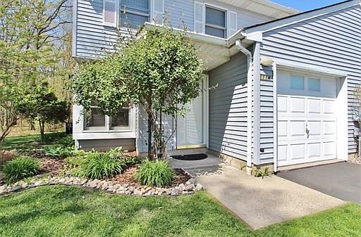 Beautiful mint condition 3 bedroom, 2.5 bath Colonial half duplex features an open floor plan. The entry foyer welcomes you into a large living room with wood parquet flooring. There is a remodeled eat in kitchen with new cabinets, ceramic tile flooring plus a separate dining area. The second level features all hardwood flooring throughout, oak staircase and bannister. The master bedroom has an ensuite bathroom plus a walk in closet. The second bedroom features built in cabinets and bookshelves. The private property features a patio, shed and gardens that back up to a natural wood preserve. There is a one car garage and private driveway. This home is located close to schools and is close to NY transportation.