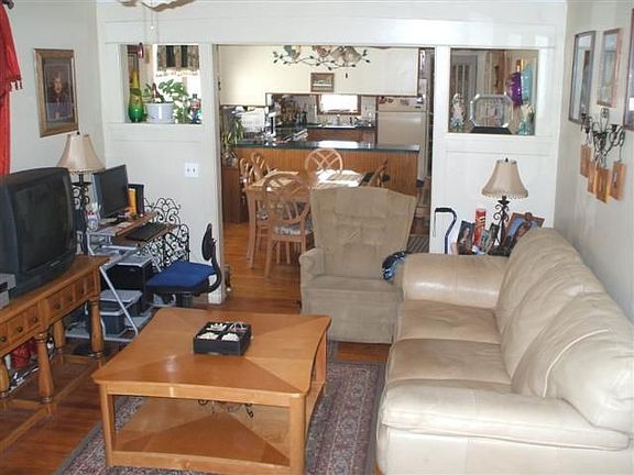 Larger than it looks! Well maintained home w/hardwood flrs, freshly painted interior. Kitchen has oak cabinets, newer stove & new flooring. Bsmt has finished room. Enclosed heated porch w/sliders leading to deck overlooking fishpond-almost 1 acre of land. Roof, windows & electric/wiring updated 5 yrs ago. Some plumbing updated.
