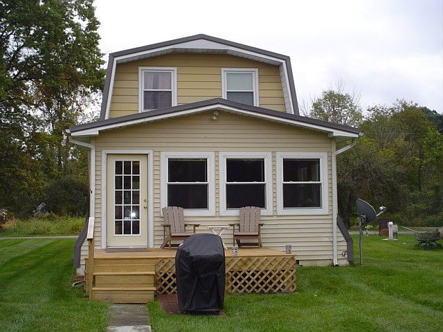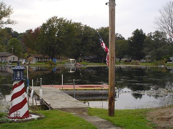 A perfect week-end get away with plenty of room for family and friends. This home sits on 2 lots with 2 piers, a sandy swimming beach with a raft plus your own gravel boat launch! Take a break from the sun and sit under the roofed pavilion. This home and detached garage have new metal roofs 2017. Kitchen and living area are all open, windows across the front of the home are perfect for seeing the lake and watching the kids play in the yard. Three bedrooms upstairs along with a half bath. Full bath downstairs with tub and shower and new highboy toilet. Sit outside on the newly constructed wood deck as you enjoy the view. Plenty of parking for family and friends. Bause Lake is attached to 9 chain of lakes, known for kayaking, canoeing and fishing. Newly installed sewer system summer 2017. The detached garage has a toilet and sink that is hooked into the sewer which was constructed on the property summer 2017.Plenty of parking here as this home sits on 2 lots, this home is ready for a new owner, come an start your own lake memories!