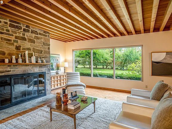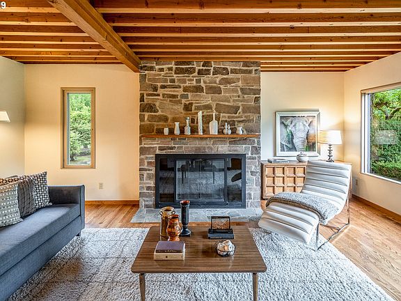 $150,000 price reduction. John Storrs mid-century in vintage condition situated on a large flat lot, 1.07 acres, in the heart of Dunthorpe. One of the few classic mid-century homes in the neighborhood. French doors open from the living room to gardens designed by another Portland classic, Barbara Fealy. Spacious, light filled kitchen. Master suite plus 4 more bedrooms.