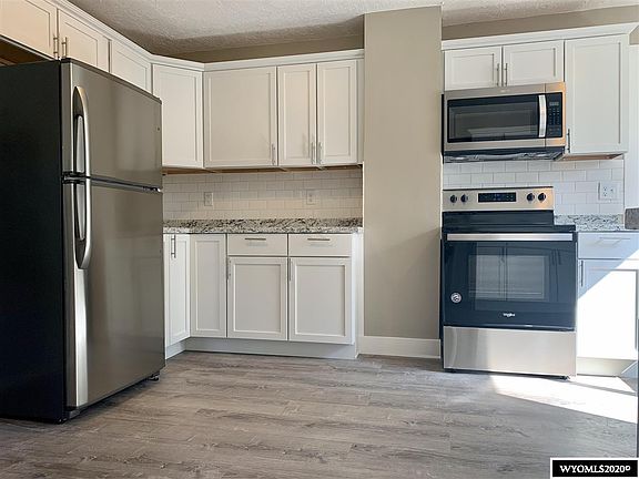 Charming home with many updates to kitchen, baths, roof, electrical, windows, flooring & more! Detached garage is just under 600 sq ft with a driveway through to Poplar from the alley, extra parking, new stainless appliances, main floor laundry, 4 bedrooms, 1.75 baths and plenty of storage space. Call or text Dorie G Nelson/Cornerstone Real Estate to see the home 307-267-1190.
