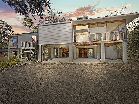 Escape to tranquility on this sprawling 7.89-acre property, where seclusion meets comfort! Step inside this charming 3 bed/2 bath and be greeted by cathedral ceilings that create an airy, open atmosphere. The sliding glass doors lead you onto a partially wrap-around porch, the perfect spot to sip your morning coffee or unwind with a glass of sweet tea in the evening. The master bedroom boasts dual closets and a private screened-in porch offering panoramic views of the expansive property! It also includes 1/10 interest in waterfront access with dockage and a cement boat ramp, providing you with deep water access to the best fishing on the Steinhatchee River and Gulf of Mexico! Just when you think this property couldn't get any better, discover a large shed with an attached lean-to and power, stalls for animals, and a spacious pump shed. The house is slabbed underneath, offering additional storage and ample room to park your vehicles, boat and toys. This property checks all the boxes, even featuring an elevator to do all the heavy lifting on grocery day! Go ahead and schedule a tour and make the country- coastal life yours!