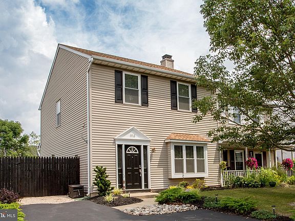 Welcome home to this beautifully updated Twin home located in Walnut Bank Farms. Freshly painted throughout featuring an open concept bright living space & luxury updates TO. Foyer Entry with tile plank flooring, updated half bath, utility/laundry room with loads of storage space. Living Room with electric fireplace flanked by custom built-ins that flows into the Dining room with slider access to the rear composite deck and large private fenced in yard that includes a firepit. The modern kitchen with wood cabinetry, new stainless appliances & tiled backsplash complete the 1st floor. 2nd Floor Features: Master Bedroom featuring walk-in closet & fully renovated (2023) tiled en-suite with beautiful accents & luxury spa fixtures. 2 additional generously sized bedrooms both with ample closet space & an updated hall bath with tiled floor & surround. Upgrades & Extras Include: Updated Roof (2020), Updated HVAC (2018), Updated Water Heater (2021), updated lighting fixtures, outdoor firepit. Close to community parks, shopping & all major routes make 1114 School House Lane an absolute must see and only requires your unpacking! No HOA!