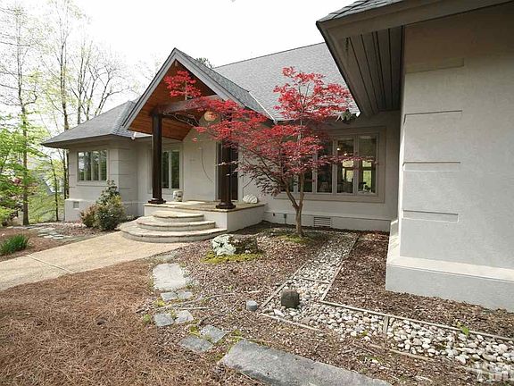 Distinguished custom design was influenced by the oriental "Moon Gate". Many lovely details can be found throughout the home. Abundant natural lighting, generous room sizes, two bedrooms on the main level, including master. Large kitchen with island opens to covered patio, oriental style walled garden with Koi pond and fairway views of Treyburn's golf course beyond. Complete with ShiiSaa roof ornaments that guard the home and grant good fortune to owners! Ready for new owners personal touches.