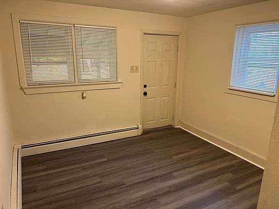 Open to applicants with Housing Choice Vouchers. This recently renovated 1st floor of a duplex has brand new vinyl flooring, paint throughout, and all new window blinds. Six windows are new to help keep it warm. The stove and refrigerator are less than 1 year old. This unit has 2 bedrooms with good natural light. The kitchen is large enough for a dining table. The bathroom has a tiled shower. The unit also has access to a large basement for storage needs. The rear door leads to a nice size covered patio and shaded yard. Walk out the backyard and up the steps to a dedicated asphalt parking spot. Owner is paying for water, sewer, and garbage. Owner will cut the grass in the front yard. Tenant is responsible for gas, electric, and telecom. Snow removal is the responsibility of the tenant.