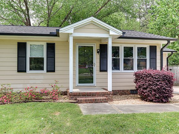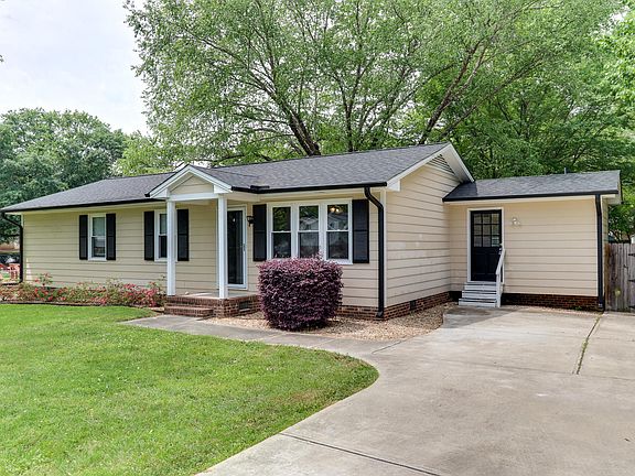 Great Garner location! Adorable ranch home situated on nearly 1/2 acre lot. One level living with an open concept. Luxury vinyl flooring installed throughout entire house. Bright kitchen with white cabinets, lots of counter space and new oversized farmhouse style sink. Dining area opens to a large covered porch that overlooks huge, flat and fenced backyard. Large bathroom with plenty of vanity space, additional 1/2 bath for guests off the laundry room. Walking distance to schools, library, grocery, coffee & bottle shops and restaurants. Convenient to downtown Raleigh, downtown Garner and White Oak shopping with tons of eateries. Roof was replaced in 2021. Concrete driveway added in 2018. New shed added in 2024. Popcorn ceiling removed 2024. Washer/dryer, refrigerator, utility cart, microwave, shed and fire pit furniture all convey. Several updates, ask your agent for a full list, must see!