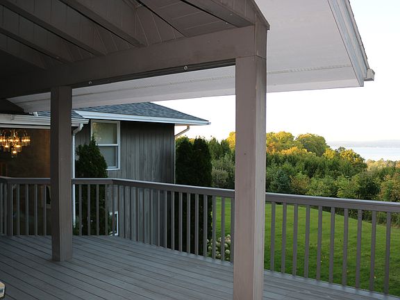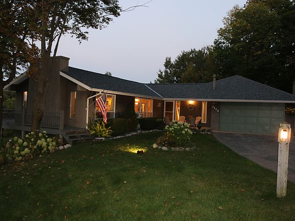 Contemporary 5 bedroom, 3 bath home located in great neighborhood, spacious lot surrounded by trees & overlooking Little Traverse Bay! Open floor plan, lots of windows, cathedral ceilings, fireplace, beautiful renovated kitchen w/ granite & great center island. 2 bdrms on main including a large master suite & covered deck. Lower level features family room, 3 add'l bdrms, full bath, huge workshop & large game room w/ cathedral ceilings & patio area that walks out to a large yard w/firepit! 2nd drive for RV!