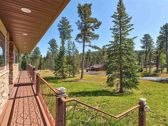 This beautiful, low maintenance home on Bogey Circle was built in 2014. Enjoy the beautiful drive on paved roads to this retreat minutes from Lead and close to the Lead Country Club. 3 bed/3 bath with 1512 sq. ft on the main floor with total sq ft of 3024. Wrap-around covered deck is plumbed for the propane grill. Open concept kitchen, dining room and living rooms are accented with gas fireplace and red cedar vaulted ceilings. Walk-out basement to covered patio and hot tub. 3rd bedroom/bath in basement. Other 2 rooms in basement will be new buyer's to finish. Propane forced air heat. Top it off with a HUGE finished heated garage--35x41 with hot/cold water faucets & floor drain!! Emergency generator is hard-wired to home. Water is from city of Lead contracted through Eagle Water Company. HOA fee covers paved road maintenance, snow removal, & weed control in the road ditches.