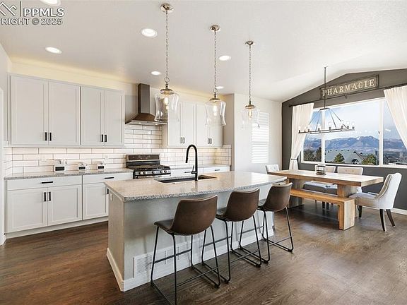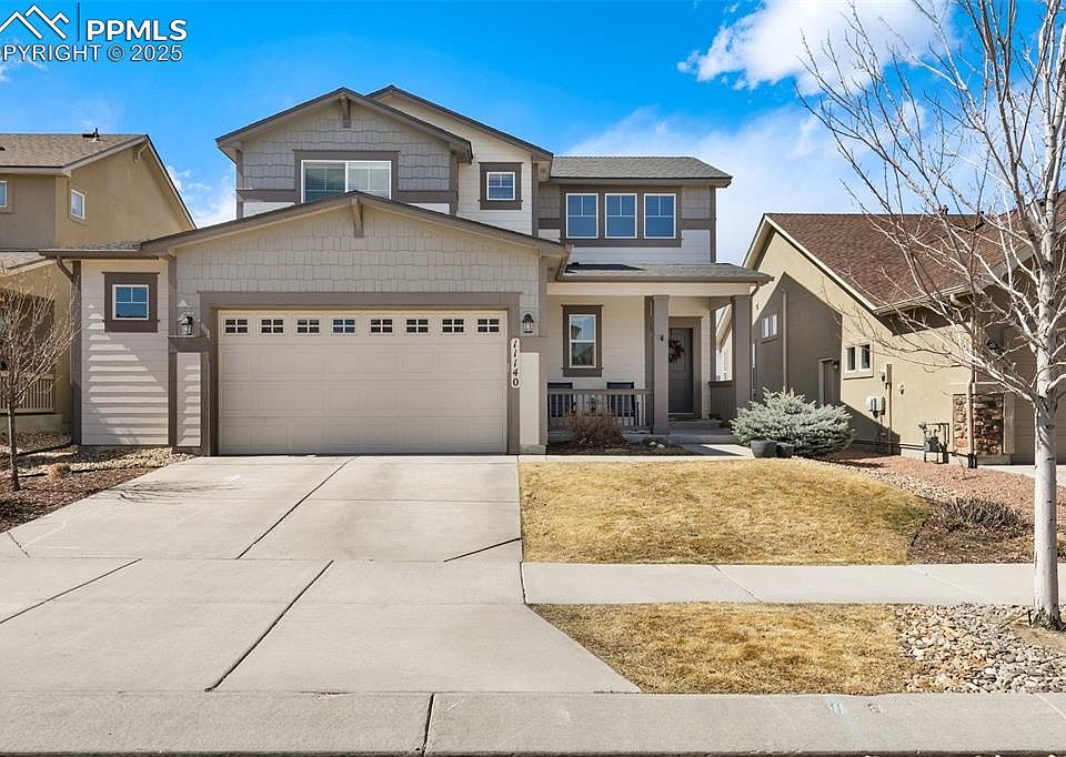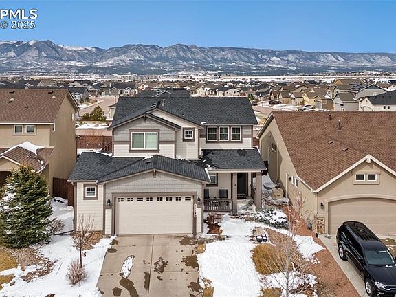Welcome to this stunning Home with breathtaking Pikes Peak views in the sought-after North Fork neighborhood in School District 20! This beautifully maintained home has 4 spacious bedrooms, 4 bathrooms, and a fully finished basement with 9' ceilings and a built-in bar—perfect for entertaining. Open concept kitchen with a gas stove, granite countertops, and pantry create a convenient set up for on-the-go lifestyles. The owner’s bathroom has a large walk-in closet and spacious shower. Enjoy cozy nights by the gas fireplace, movie nights with built-in surround sound, and hidden surprises like a secret room under the stairs. Step outside to a large, relaxing deck and professionally landscaped yard that is fully fenced. Plus, with an oversized 2.5-car garage and air conditioning, this home has it all!