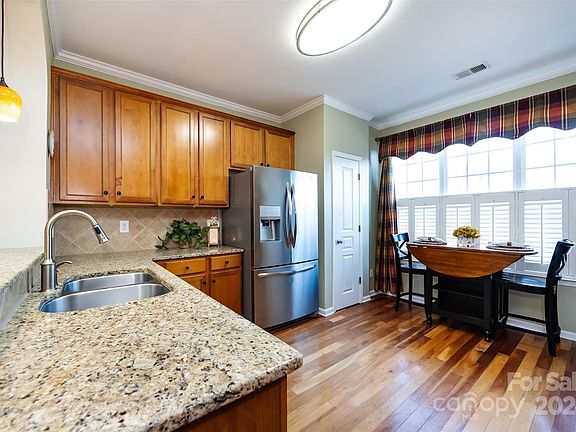 Immaculate and meticulously maintained by original owner, this Skybrook Townhome is Move-In ready. Pride of ownership is evident everywhere. Main level boasts HW Floors throughout the open floorplan. Kitchen features double oven, granite countertops, dual Pantry’s and multiple eating areas. Bathed in natural light, entertaining guests is a breeze in the Large Family Room and Dining area featuring a Gas Log Fireplace, a Dry Bar area and Walk-Out Deck. Upper Level offers generous Primary Suite w/Walk-in Closet, Tray Ceiling, and a Bath w/both Shower and Soaking Tub. 2 More BR/Office spaces share another full bath. Lower Level surprises with another large BR/Bonus Suite w/Full Bath and Walk-out Patio. Sought after schools and low Cabarrus Co Taxes. HOA includes water/sewer, trash, exterior maintenance and lawn/landscape. Perfect location, close to Shopping, Dining, Recreation and Healthcare. Just steps away from Golf, Walking Trails, and all the amenities of a Skybrook address.