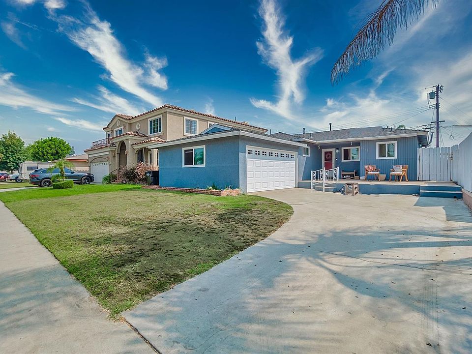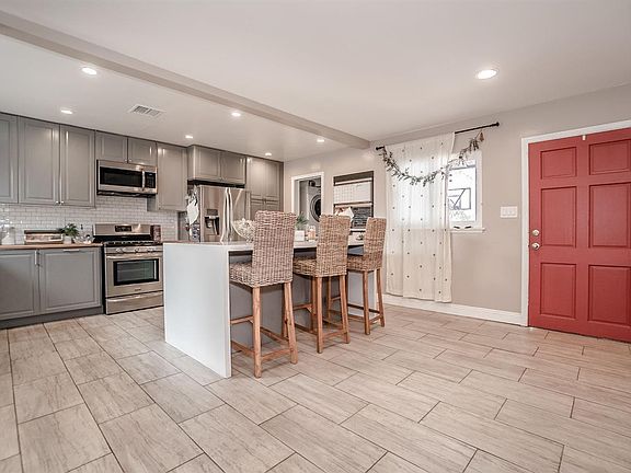 Rare 4 bedroom house in a quiet neighborhood! This gorgeous home is full of beautiful updates. The beautiful custom kitchen is stunning, with butcher block counters, subway tile, ceiling height cabinets, built in dishwasher, and large island with tons of storage and a gorgeous waterfall countertop. Just off the kitchen is a spacious dining area, perfect for a large table. Enjoy the convenience of the indoor laundry room with plenty of room to fold and store. The huge sunken living room is the perfect place to relax and enjoy company and the large sliding glass door lets in tons of natural light. Both bathrooms have been completely redone with beautiful updates and luxurious tile. The stunning wood floors are featured in all of the bedrooms, no carpet anywhere! The backyard features a large covered patio and grassy area and the front yard features a unique raised patio area, all perfect for enjoying the outdoors! The home also features a wonderful two car garage and angled driveway. The home is not only beautiful, but it is efficient, complete with all new windows and a new air conditioning unit. This home is perfect!