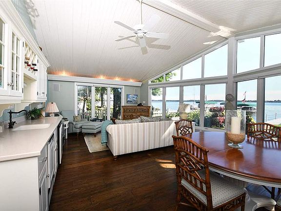 As you pull up to this property from your boat, you will notice the park-like setting of the professionally landscaped yard, complete with slate patios and walkways, pergola and swing - perfect for enjoying sunrise views. This is an "Oasis" on South Shore Beach. Not only do you have dual docks to park all your lake toys, you have sandy bottom and nearly 100 foot pristine shoreline bordering this property. A rare opportunity to own a property in this location. Once on shore, you will be welcomed into the home filled with character but modern amenities - the perfect mixture of both. The lake views come to mind as you walk into the great room with vaulted ceilings, windows encapsulating beautiful Lake Wawasee, and a wonderful spot to entertain while enjoying lake living. The handscraped hardwood floors are throughout the main level of this wonderful home. The kitchen is tucked in the back of the home but is open to the main living space and seating area of the family room. The master bedroom is located on the main level and has it's own private bathroom and laundry room just off of it. Upstairs, there are 4 spacious bedrooms as well as a full bathroom. These rooms can provide bunk space for a crowd, if needed. The renovations of this home have been done correctly and with the utmost quality. The property was also recently hooked up to the sewer line (Nearly $20,000.00 cost to the seller). This property also is unique in that it has such a private setting with space on each side - whether you are in the backyard or front yard, the home feels very private. There is also ample parking and a detached 2 car garage for storage. This property is truly a must see on Lake Wawasee - Location, Location, Location! This property is just under 2200 sq ft of living space and could make this the perfect second home or vacation get away. Schedule your exclusive showing today!