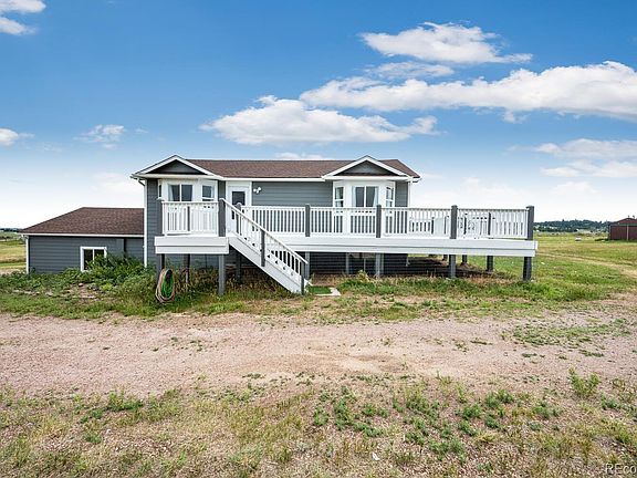 Offering a 2 point buy down! Seller is ready to get moved out of state…..MOVE IN ready for your offer! Amazing Home in desirable Pine Meadows neighborhood, with an AWESOME Outbuilding. Bring your Harley’s and Corvettes. 1/4 mile off of the paved road! VIEWS of Pikes Peak from your front window and master bedroom and deck. Basic covenants keep the neighborhood from feeling like you live with homes packed in every square inch. If you have been searching for a home in Elizabeth and surrounding areas. Store your RV, at your own home, you can have it all in Kiowa. Work from home, while you operate your hobby or business from the outbuilding. 10 acres of land to play on with your horses, utvs and atvs, and as mentioned above, a freshly painted home inside and out, including all ceilings, doors, and trim. The house is 3 bedroom, 3 bath, with a game room downstairs that can be used as a 4th bedroom with the addition of a closet. 12.5 mm commercial laminate floors throughout the main level, which are near impossible to scratch, make this house easy to care for with kids or pets. Residential laminate flooring throughout the downstairs level. Walkout basement has lots of light in the 2 garden level bedrooms. Outbuilding is 20x60 interior, with available horse stalls on the back/North side. Interior has a 20x40 finished area that is insulated, with furnace and AC unit, concrete floors with drains, 4 water taps inside, 1 tap outside, and has been wired to handle whatever power needs you may have, with 220v and 120v outlets spaced throughout, it even comes with a propane tank for ease in separating expenses. Home and outbuilding sit far enough from the road so no dust problems. Hot water heat in the house is efficient and economical, offering a steady temperature without the drying effects of a furnace. Enjoy an evening on the deck with beautiful views. Economical taxes, great community and so much more! Don’t miss out on this one, finished, heated, and cooled outbuildings.