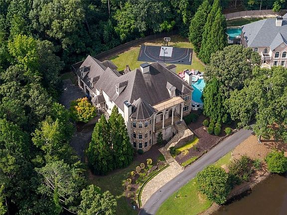 Experience luxury living in this exquisite Roswell estate, thoughtfully designed for both elegant entertaining and everyday comfort. Situated on a private 1.2-acre lot, the backyard oasis features a heated saltwater pool and spa, a lighted basketball court, and expansive stone patios—ideal for alfresco dining and outdoor relaxation. Inside, an open-concept layout is enhanced by soaring ceilings, intricate millwork, and multiple fireplaces that add warmth and character throughout. The gourmet kitchen flows seamlessly into a fireside keeping room and casual dining area, while formal living and dining spaces offer the perfect setting for hosting guests in style. The richly appointed, wood-paneled library features coffered ceilings, built-in shelving, and a fireplace—ideal as a refined home office or reading retreat. The spacious primary suite impresses with a spa-inspired bath, oversized walk-in closet, and a private balcony overlooking the serene grounds. The finished terrace level expands the home’s livable space with a home gym, full bar, and state-of-the-art theater. An additional guest suite includes its own kitchen, sitting area, laundry, and private bath—perfect for multi-generational living or long-term guests. Ideally located in a peaceful Roswell enclave with convenient access to top-rated schools, shopping, and dining, this timeless estate offers the ultimate blend of luxury, comfort, and lifestyle.
