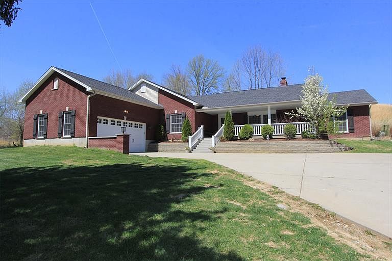 WOW, you must see this home! Beautiful peaceful setting on 2.2 acres. LOW Boone County taxes and public water. Minutes to Union Kroger. Amazing ranch home with a huge 30'x10' covered porch will be a relaxing retreat to enjoy your surroundings. Oversized 2 car garage with loft area storage and walk down entrance to unfinished basement. Open floor plan design with soaring high ceiling heights throughout home. Extra large bedrooms. Master Bedroom boasts his and her closets, window seat with additional storage, and an adjoining Master Bath. Formal inning room, which may also be used as formal living or study, offers crown and chair rail molding, beautiful hardwood, gas fireplace and built in cabinetry. Large open eat in kitchen with granite, pantry and ceramic tile. Large Family Room with vaulted ceiling, and ready for your wood burning stove. Efficient office tucked away from sight. Gorgeous in ground pool with stamped concrete, slide, lights, and water fountains. Large 2000 sq.ft. fully equipped detached garage GREAT for any in home business or extra storage. Call to set u a showing today!