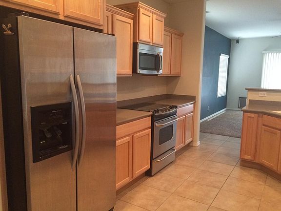 This beautiful 4 bedroom / 2 bath house in Bella Via Community Association is 1638 sq ft and ready to move into starting July 1st. Walking distance to Gateway Polytechnic Academy and multiple parks. House comes with all appliances and washer/dryer. Satellite dish is available and installed if desired. House has small dog door. This house falls into the new Eastmark High School district pending the student's grade (only 9th and 10th grade right now). Only minutes from the new Safeway strip center currently being built. Please do NOT disturb the current tenants. They will be in the house until June 30th. $1600/month with a $1600 security deposit, $250 non-refundable cleaning fee, and $250 non-refundable pet fee. Tenant responsible for lawn care.