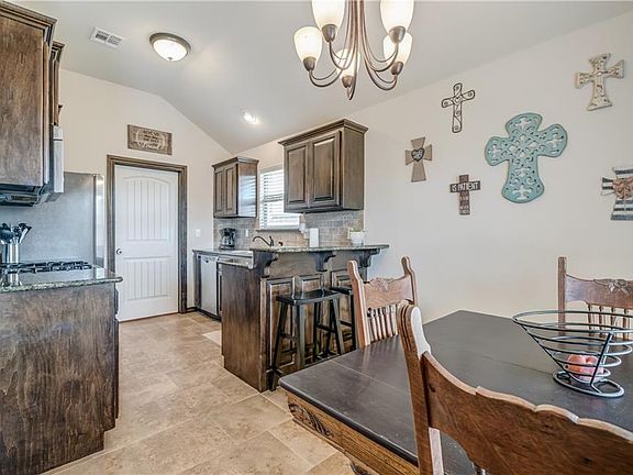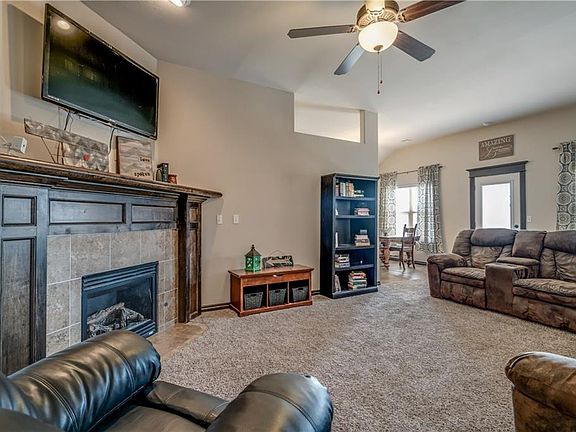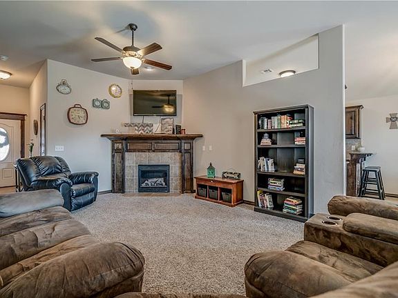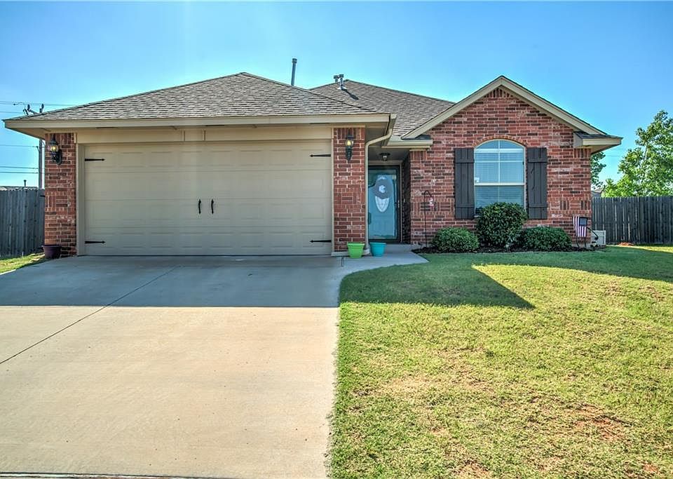 Great Home in Quiet Cul De Sac with Super Layout of the Space!! This charm feels much bigger with the use of space! The Large Living area has Corner Gas Log Fireplace and Room for the XL Sectional!! It's large Energy Efficient Windows allow a lot of natural light, and 2" blinds throughout for Window Treatments! The Kitchen has SS appliances and Granite Counter tops with PANTRY & BREAKFAST BAR! The Master Suite is HUGE!! Large Walk In Closet, Tub & Shower, and Dual Vanities! In Law Style set up for the Secondary Bedrooms with Hall bath. Covered Porch and Covered Patio, and a LARGE Fully Fenced yard! Storm Shelter in Garage Floor. Come see this Great Home! Motivated to SELL!!
