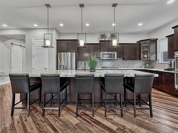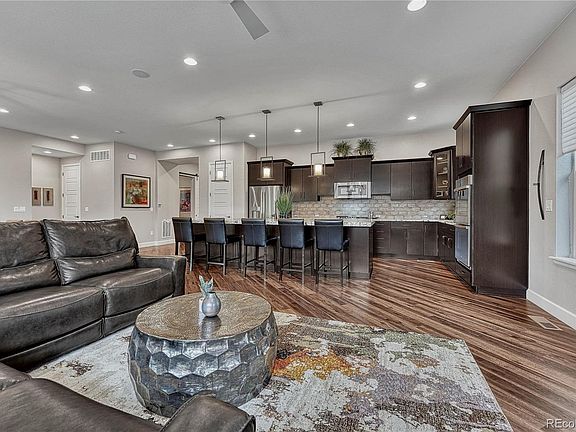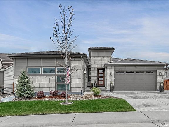 This Shea Homes Cimarron model is extraordinary with amazing upgrades ($200K+) & thoughtful details! When you walk in, the high ceilings & open-concept will take your breath away! Flooded w/natural light, the great room is the heart of this home so sit back & relax next to the Cosmo gas fireplace featuring floor to ceiling tile & casted mantel! For the chef in you, the gourmet kitchen is complete w/dbl ovens, gas cook-top, roll out lower cabinet shelves & soft close doors/drawers & a pantry! You will love the abundance of counter space + a 13' slab granite island, w/Custom pendant lights, perfect for prepping meals & entertaining family/friends! Start dinner in the stylish dining area, then open the 3-panel glass sliding door to the outdoor patios where you will experience beautiful sunsets! The pro-landscaped & fenced yard is easy to maintain & continues the open feel w/no neighbors towering over you (1 reason the owners chose this lot!) The primary bedroom suite features a modern bathroom w/dual sinks, grand walk-in shower & custom closet, w/direct access to the laundry room! A secondary bedroom w/full bath ensuite, a private study, powder room & mudroom w/bench complete the main level - one level living at its finest! The basement level, finished by the builder, continues w/high ceilings & the same quality/details. Offering 2 spacious bdrms, a full bath, an open family/rec room, full wet bar (w/dishwasher, fridge, disposal & rollout cabs). Abundant storage space throughout. The 3 car garage is perfect, split 2/1 (1 garage has an added sub panel for any add'l tools/toys/etc). Stepping Stone is a community offering an active lifestyle & amenities perfect for residents of all ages, including parks, walking trails, community pool, playground & clubhouse! Minutes to I25, Sky Ridge Hospital, Charles Schwab campus, DTC, Park Meadows & <4 miles to Parker Mainstreet for retail/food/fun! Built in 2019 you will not find a better quality or more meticulously maintained home.