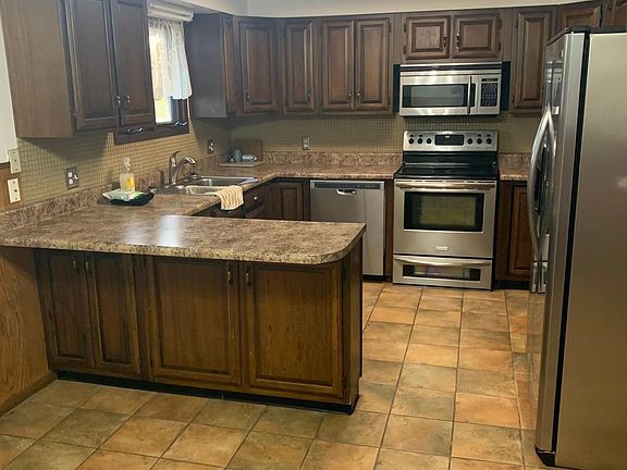 Large 4 bedroom 3 bath home on .9 acres. This house is in the county on a hard surfaced rd. Very spacious floorplan. 4 bedrooms on the main level including a master with master bath. Updated eat in kitchen and a large dining room. The lower level features a wet bar, wood burning stove insert, a rec room, a half bath, large family room and access to the tuck under garage. Large deck and patio off the back of the house. Huge fenced in back yard with timber behind. This is a fantastic home and a must see. Call an agent to schedule a showing.