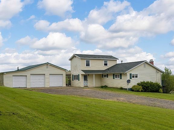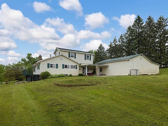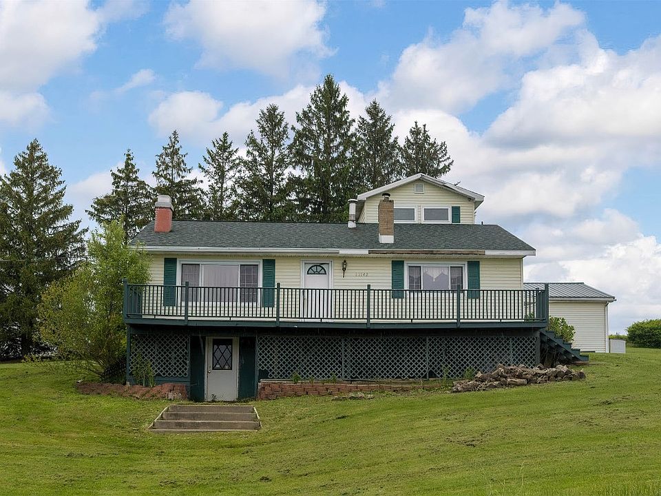 Beautiful location in Waterford! Home sits up on a hill on a 1 acre corner lot overlooking stunning country views, a stargazers dream location! The outbuilding is heated with a wood stove, has a heated cement floor with drainage, its' own hot water tank, and bathroom, truly a shop paradise. Enjoy the outside covered porch, fire pit area, and 312 sq ft deck overlooking the picturesque landscape. Interior of this country home offers 3 bedrooms, 2 full baths, wood burning fireplace in the family room, large eat-in kitchen, living room with walkout to the covered patio and country views out almost every window! Mostly finished lower level offers walkout, a built in sauna, potential for a bonus room, full bath with laundry, and a wood stove. Tons of potential to make this beautiful property your own! Estimate recieved to install French drains and sump pump in basement, seller is negotiable to covering this expense prior to closing.