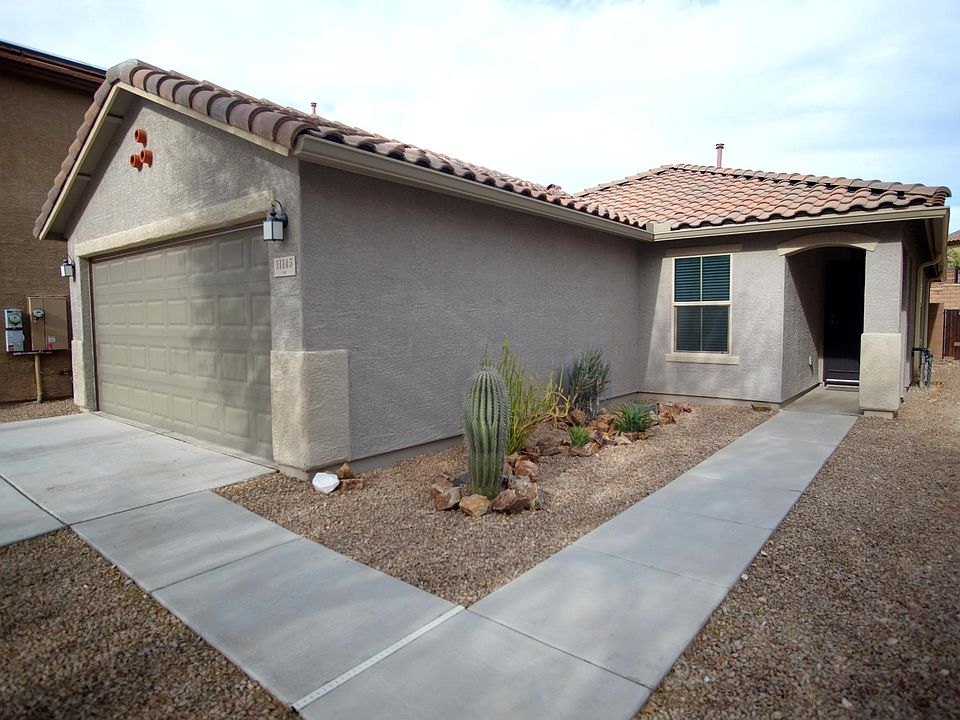 Text for a Walkthrough Video/more info. 3 Bedroom/2 Bathroom 1465sf One-story Home in Vail Schools w/ Elementary School a short walk away + easy access to I-10 and the Valencia Corridor with Raytheon, Tucson Int'l Airport, D-M Air Force Base, and Fulfillment Centers of Amazon, Homegoods, and Target all an easy drive. You're greeted with an island Kitchen w/ Granite counters, premium cabinets w/ organizers & full pullouts, and large Pantry; Master BR has a private Bathroom & walk-in closet; Laundry Room incl washer + dryer; central air conditioning; 2 car Garage; and walled-in backyard w/ covered Patio. 12mo minimum Lease, Costs are; Non-refundable $50/adult Application, $1795 Security Deposit, $150/pet Pet with approved pet, $400 cleaning. Tenant pays all utilities. 12mo minimum Lease, Costs are; Non-refundable $50/adult Application, $1795 Security Deposit, $150/pet Pet with approved pet, $400 cleaning. Tenant pays all utilities.