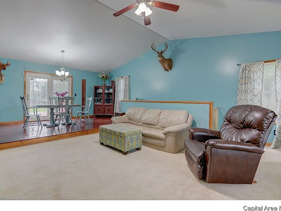 Nice 3 bedroom ranch with partially fin. walk-out basement on 1 acre. Vaulted ceiling in spacious living room, master bath with corner whirlpool tub & shower and main floor/basement laundry. Newly carpeted upper level, lower level family room/rec room combination full bath. Kitchen with SS appliances. Only minutes from Springfield. Brand new Cook's 16 x 12 lofted barn with lifetime guaranty. Newer dishwasher, hot water heater & sewage ejection.