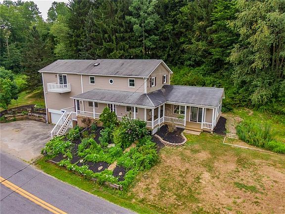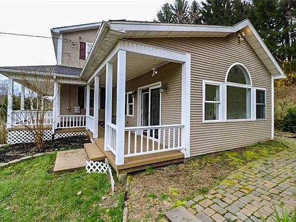 2 story vinyl sided home with large front porch overlooking a rural landscape. Decorative brick rear patio, 1 acre of land and oversized 1 car garage. Kitchen features ample cabinet/counter space and has a large center island with cooktop. Main level family room with laminate flooring and fireplace. Sunroom/hot tub room. Master bedroom with vaulted ceilings, walk-in closet, a small upper level deck. Master bath includes garden jet-spray tub with decorative ceramic tile surround and double bowl sinks. 2nd floor laundry. New carpeting and freshly painted. New boiler. Many updates.