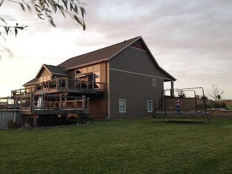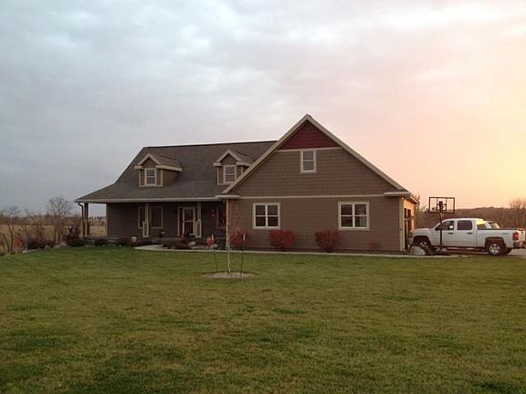 Quality built custom home sitting on a total of 24 acres; 8 acres divided with house + 14 acres crop + 2 acres prairie. Beautiful southwest view out large main floor windows or from huge multi-level deck with 24' round pool. 40' x 8' covered front porch. Over 4000SF finished, 2 bedrooms up, 2 bedrooms down. Large master bedroom, 12' tray ceiling, master bath with jetted tub and large tiled shower. Large walk in master closet. Large rooms, 9' ceilings up and down. 16' vaulted ceiling & fire place with surrounding windows in great room. Craftsman style interior finish: carpet & oak hardwood floors, oversized custom oak trim, 3 panel solid oak doors, hickory cabinets & solid surface counters, tiled back splash, walk in pantry. Oversized 3 car garage with heat, floor drain, hot/cold water. Attic storage over garage. 2x6 construction with blown in blanket insulation, cement board siding. Geothermal heating/cooling, in-floor radiant heat in basement, 80 gallon water heater, water softner. Rural water, septic, cable. Just off four lane highway, 30 minutes to Des Moines, 25 minutes to Ames, 20 minutes to Marshalltown. Beautiful 18 hole golf course 1 mile away.